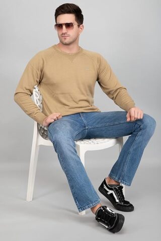 Park Avenue Men Full Sleeve Slim Fit Solid Pattern Cotton Polyester Blend Regular Neck Regular Neck Casual Sweatshirt